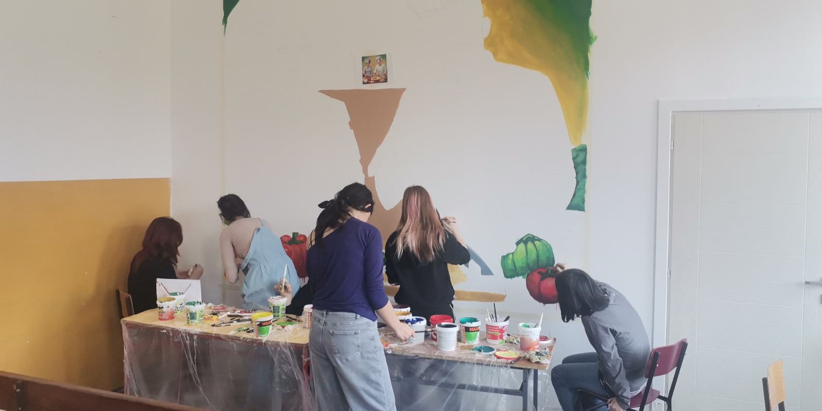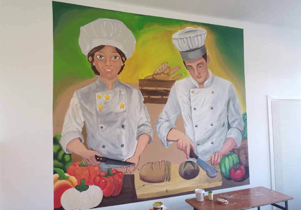 Poseban doprinos projektu dali su učenici Škole za tekstil i dizajn, koji su oslikali zid školske trpezarije i time dodatno oplemenili prostor.
